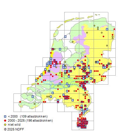 CC BY-NC-SA 3.0 NLVerspreidingNederlandZeldzaam in Zuid-Limburg en bij Nijmegen. Elders zeer zeldzaam. Niet in Zeeland en Flevoland.
