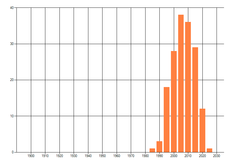 Het aantal atlasblokken (5x5 km) waarin de soort is gemeld binnen een periode van vijf jaar (vanaf 1980) of twintig jaar. Niet gecorrigeerd voor waarnemersinspanning en het aantal doorgegeven waarnemingen kan sterk variëren per periode, dus een trend in verspreiding kan hier niet direct uit worden afgelezen. Het opgegeven jaartal is het eerste jaar van de periode. Bron: gevalideerde waarnemingen uit de NDFF.