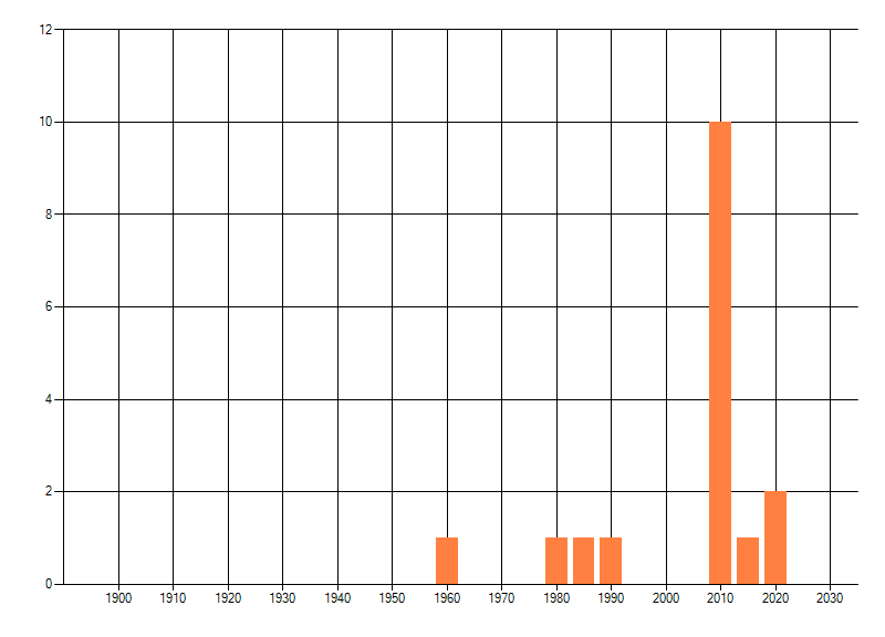 Het aantal atlasblokken (5x5 km) waarin de soort is gemeld binnen een periode van vijf jaar (vanaf 1980) of twintig jaar. Niet gecorrigeerd voor waarnemersinspanning en het aantal doorgegeven waarnemingen kan sterk variëren per periode, dus een trend in verspreiding kan hier niet direct uit worden afgelezen. Het opgegeven jaartal is het eerste jaar van de periode. Bron: gevalideerde waarnemingen uit de NDFF.