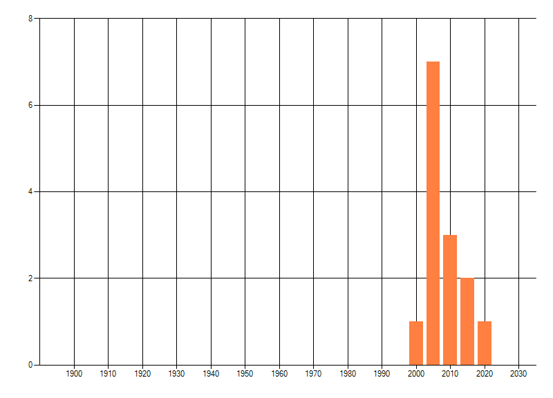 Het aantal atlasblokken (5x5 km) waarin de soort is gemeld binnen een periode van vijf jaar (vanaf 1980) of twintig jaar. Niet gecorrigeerd voor waarnemersinspanning en het aantal doorgegeven waarnemingen kan sterk variëren per periode, dus een trend in verspreiding kan hier niet direct uit worden afgelezen. Het opgegeven jaartal is het eerste jaar van de periode. Bron: gevalideerde waarnemingen uit de NDFF.