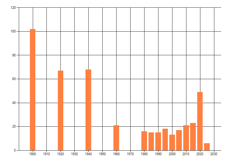 dus een trend in verspreiding kan hier niet direct uit worden afgelezen. Het opgegeven jaartal is het eerste jaar van de
