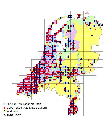 De trend is gecorrigeerd voor waarnemersinspanning en geeft de relatieve verandering in het aantal bezette kilometerhokken weer.
