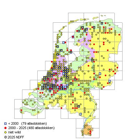 CC BY-NC-SA 3.0 NLVerspreidingNederlandZeldzaam in laagveengebieden in het westen van het land en zeer zeldzaam in het zoetwatergetijdengebied, langs de benedenloop van de grote rivieren en langs de Vecht. Elders alleen verwilderd.
