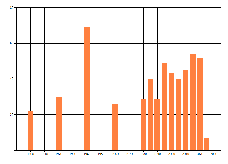 dus een trend in verspreiding kan hier niet direct uit worden afgelezen. Het opgegeven jaartal is het eerste jaar van de
