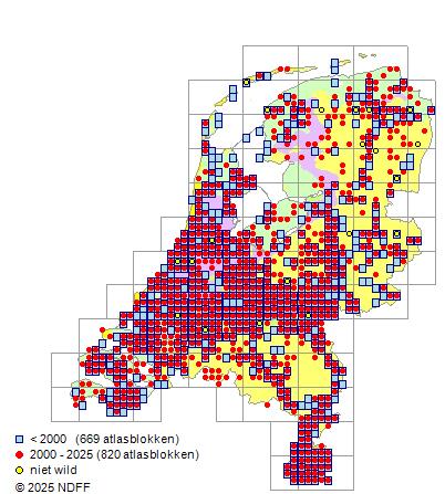 CC BY-NC-SA 3.0 NLVerspreidingNederlandPlaatselijk vrij algemeen in Zuid-Limburg, het rivierengebied en in Zeeland. Elders zeldzaam tot zeer zeldzaam, maar wel vrij algemeen langs spoorwegen.