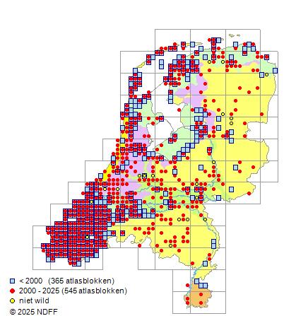 CC BY-NC-SA 3.0 NLVerspreidingNederlandVrij algemeen in Zeeland, in het aangrenzende rivierengebied en in het Zuid-Hollandse duingebied. Zeldzaam in de Noord-Hollandse duinen, op de Waddeneilanden en in het noordelijk zeekleigebied. Elders zeer zeldzaam.
