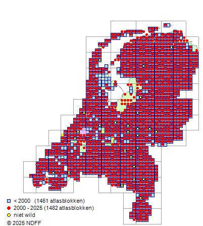 Bron: FLORON - Gemodelleerd op basis van waarnemingen uit de NDFF voor de periode 2000-2021.