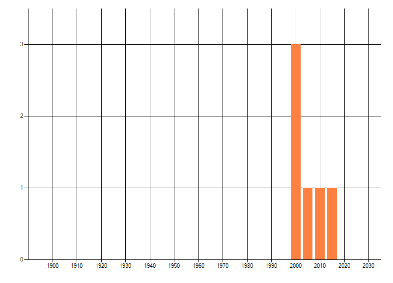 Het aantal atlasblokken (5x5 km) waarin de soort is gemeld binnen een periode van vijf jaar (vanaf 1980) of twintig jaar. Niet gecorrigeerd voor waarnemersinspanning en het aantal doorgegeven waarnemingen kan sterk variëren per periode, dus een trend in verspreiding kan hier niet direct uit worden afgelezen. Het opgegeven jaartal is het eerste jaar van de periode. Bron: gevalideerde waarnemingen uit de NDFF.