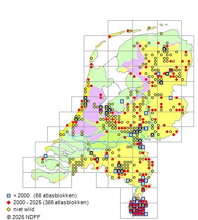 CC BY-NC-SA 3.0 NLVerspreidingNederlandVrij zeldzaam in Zuid-Limburg, zeldzaam in Midden-Limburg en in de buurt van Nijmegen en zeer zeldzaam Midden-Nederland, Drenthe en in de Hollandse duinen.