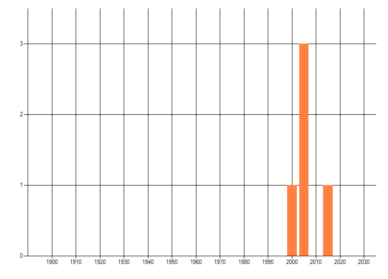 Het aantal atlasblokken (5x5 km) waarin de soort is gemeld binnen een periode van vijf jaar (vanaf 1980) of twintig jaar. Niet gecorrigeerd voor waarnemersinspanning en het aantal doorgegeven waarnemingen kan sterk variëren per periode, dus een trend in verspreiding kan hier niet direct uit worden afgelezen. Het opgegeven jaartal is het eerste jaar van de periode. Bron: gevalideerde waarnemingen uit de NDFF.