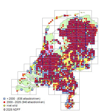 Bron: FLORON - Gemodelleerd op basis van waarnemingen uit de NDFF voor de periode 2000-2021.
