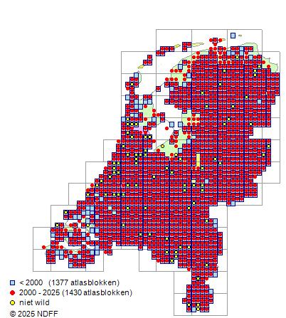 CC BY-NC-SA 3.0 NLVerspreidingNederlandZeer algemeen, maar zeldzaam in het noordelijk zeekleigebied, in het waddengebied en in Flevoland.