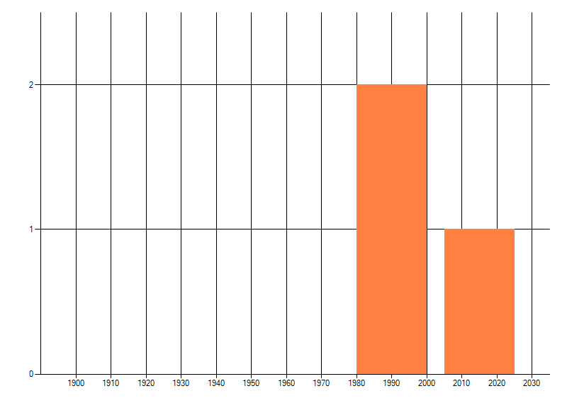 Het aantal atlasblokken (5x5 km) waarin de soort is gemeld binnen een periode van vijf jaar (vanaf 1980) of twintig jaar. Niet gecorrigeerd voor waarnemersinspanning en het aantal doorgegeven waarnemingen kan sterk variëren per periode, dus een trend in verspreiding kan hier niet direct uit worden afgelezen. Het opgegeven jaartal is het eerste jaar van de periode. Bron: gevalideerde waarnemingen uit de NDFF.