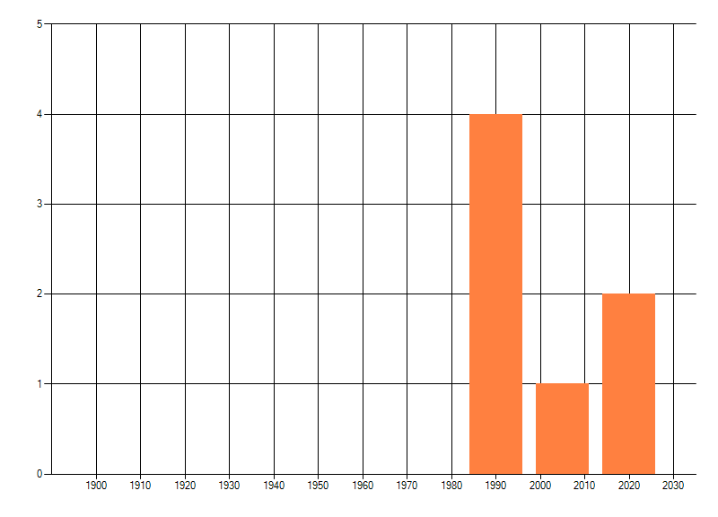 Het aantal atlasblokken (5x5 km) waarin de soort is gemeld binnen een periode van vijf jaar (vanaf 1980) of twintig jaar. Niet gecorrigeerd voor waarnemersinspanning en het aantal doorgegeven waarnemingen kan sterk variëren per periode, dus een trend in verspreiding kan hier niet direct uit worden afgelezen. Het opgegeven jaartal is het eerste jaar van de periode. Bron: gevalideerde waarnemingen uit de NDFF.