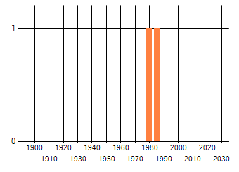 Het aantal atlasblokken (5x5 km) waarin de soort is gemeld binnen een periode van vijf jaar (vanaf 1980) of twintig jaar. Niet gecorrigeerd voor waarnemersinspanning en het aantal doorgegeven waarnemingen kan sterk variëren per periode, dus een trend in verspreiding kan hier niet direct uit worden afgelezen. Het opgegeven jaartal is het eerste jaar van de periode. Bron: gevalideerde waarnemingen uit de NDFF.