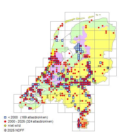 Bron: FLORON - Gemodelleerd op basis van waarnemingen uit de NDFF voor de periode 2000-2021.