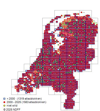 Bron: FLORON - Gemodelleerd op basis van waarnemingen uit de NDFF voor de periode 2000-2021.