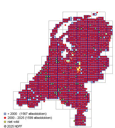 Bron: FLORON - Gemodelleerd op basis van waarnemingen uit de NDFF voor de periode 2000-2021.