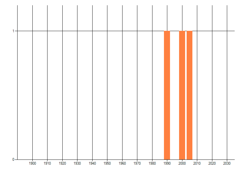 Het aantal atlasblokken (5x5 km) waarin de soort is gemeld binnen een periode van vijf jaar (vanaf 1980) of twintig jaar. Niet gecorrigeerd voor waarnemersinspanning en het aantal doorgegeven waarnemingen kan sterk variëren per periode, dus een trend in verspreiding kan hier niet direct uit worden afgelezen. Het opgegeven jaartal is het eerste jaar van de periode. Bron: gevalideerde waarnemingen uit de NDFF.