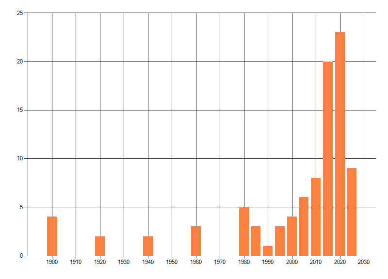 dus een trend in verspreiding kan hier niet direct uit worden afgelezen. Het opgegeven jaartal is het eerste jaar van de