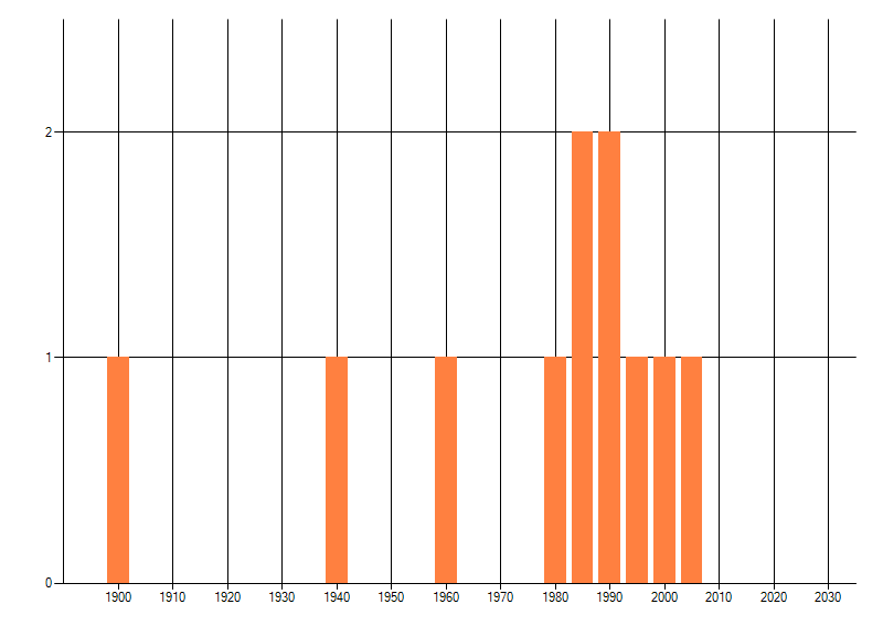 Het aantal atlasblokken (5x5 km) waarin de soort is gemeld binnen een periode van vijf jaar (vanaf 1980) of twintig jaar. Niet gecorrigeerd voor waarnemersinspanning en het aantal doorgegeven waarnemingen kan sterk variëren per periode, dus een trend in verspreiding kan hier niet direct uit worden afgelezen. Het opgegeven jaartal is het eerste jaar van de periode. Bron: gevalideerde waarnemingen uit de NDFF.