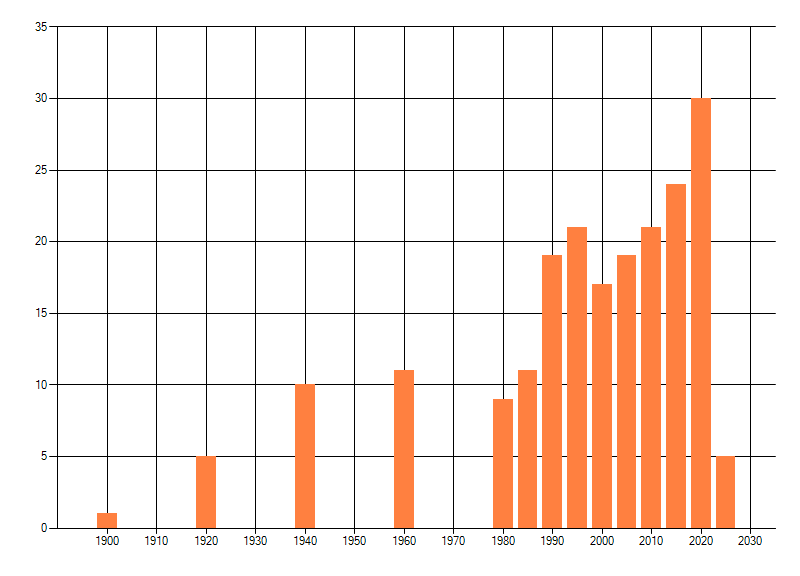 dus een trend in verspreiding kan hier niet direct uit worden afgelezen. Het opgegeven jaartal is het eerste jaar van de