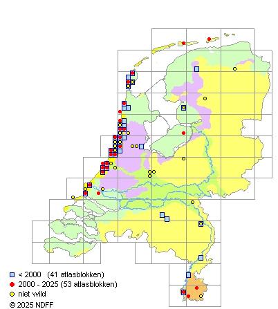 CC BY-NC-SA 3.0 NLVerspreidingNederlandZeldzaam in de duinen van Voorne tot op Texel. en zeer zeldzaam in Zuid-Limburg en misschien ook nog langs de Maas in Midden-Limburg.