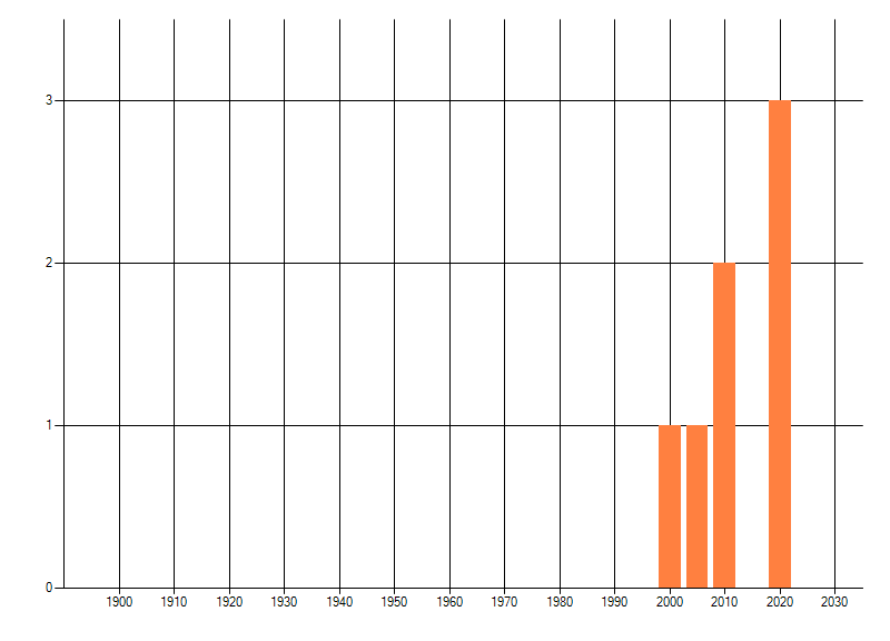 Het aantal atlasblokken (5x5 km) waarin de soort is gemeld binnen een periode van vijf jaar (vanaf 1980) of twintig jaar. Niet gecorrigeerd voor waarnemersinspanning en het aantal doorgegeven waarnemingen kan sterk variëren per periode, dus een trend in verspreiding kan hier niet direct uit worden afgelezen. Het opgegeven jaartal is het eerste jaar van de periode. Bron: gevalideerde waarnemingen uit de NDFF.
