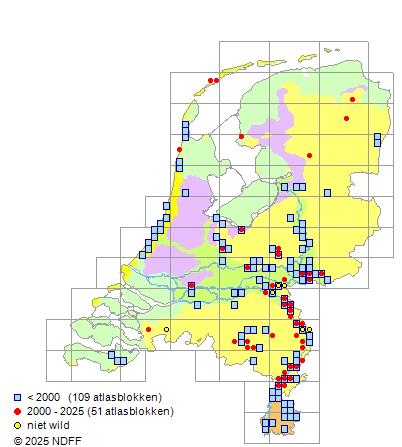 Bron: FLORON - Gemodelleerd op basis van waarnemingen uit de NDFF voor de periode 2000-2021.