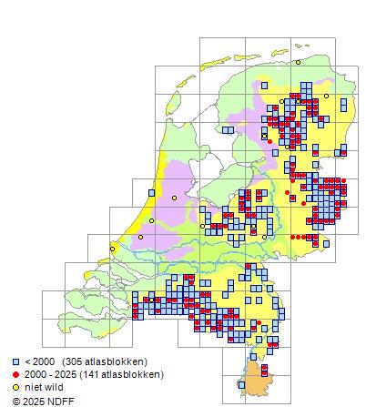 Bron: FLORON - Gemodelleerd op basis van waarnemingen uit de NDFF voor de periode 2000-2021.