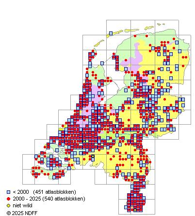 CC BY-NC-SA 3.0 NLVerspreidingNederlandPlaatselijk vrij algemeen in Zuid-Limburg en in het zoetwatergetijdengebied. Elders vrij zeldzaam tot zeldzaam.
