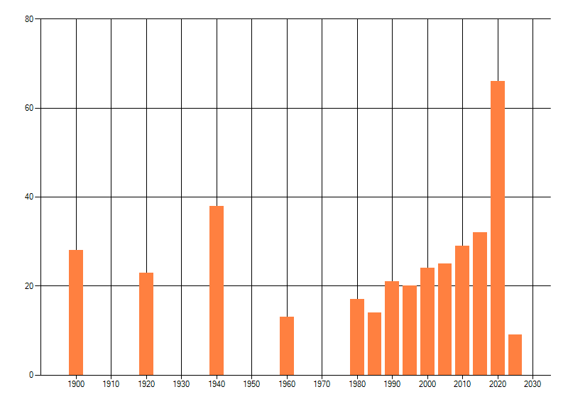 dus een trend in verspreiding kan hier niet direct uit worden afgelezen. Het opgegeven jaartal is het eerste jaar van de