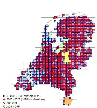 Bron: FLORON - Gemodelleerd op basis van waarnemingen uit de NDFF voor de periode 2000-2021.