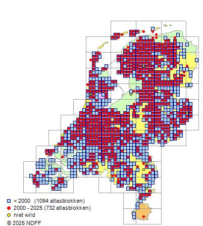 Bron: FLORON - Gemodelleerd op basis van waarnemingen uit de NDFF voor de periode 2000-2021.