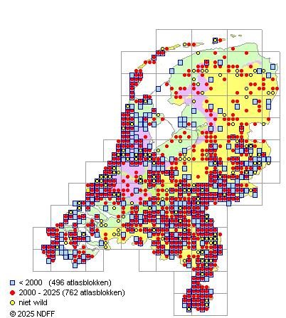 Bron: FLORON - Gemodelleerd op basis van waarnemingen uit de NDFF voor de periode 2000-2021.