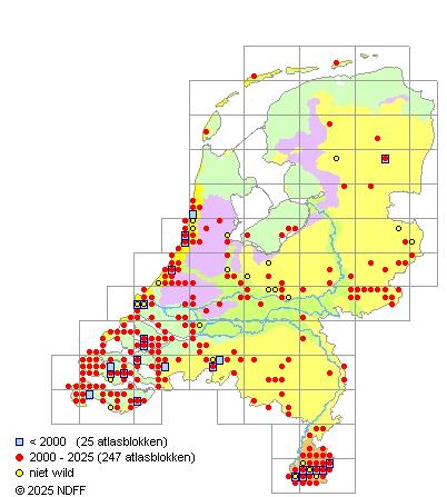 CC BY-NC-SA 3.0 NLVerspreidingNederlandZeldzaam in Zuid-Limburg, Noord-Brabant, Zeeland en in de Hollandse en Zeeuwse duinen. Elders zeer zeldzaam.