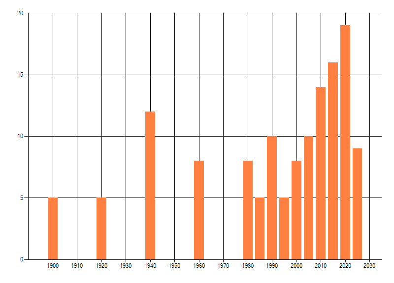 dus een trend in verspreiding kan hier niet direct uit worden afgelezen. Het opgegeven jaartal is het eerste jaar van de