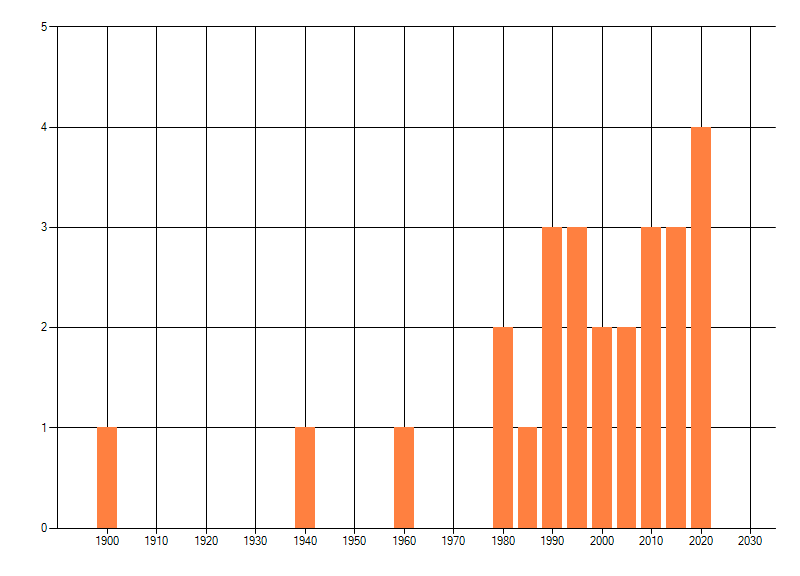 dus een trend in verspreiding kan hier niet direct uit worden afgelezen. Het opgegeven jaartal is het eerste jaar van de