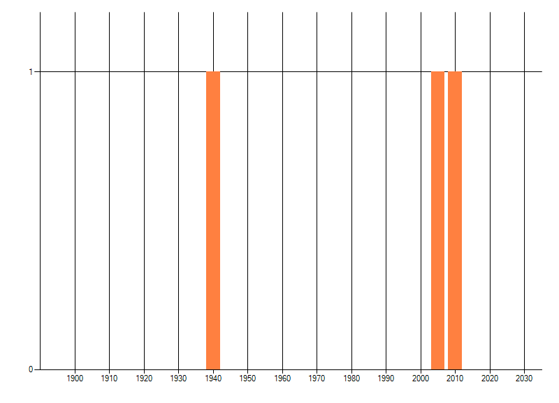 Het aantal atlasblokken (5x5 km) waarin de soort is gemeld binnen een periode van vijf jaar (vanaf 1980) of twintig jaar. Niet gecorrigeerd voor waarnemersinspanning en het aantal doorgegeven waarnemingen kan sterk variëren per periode, dus een trend in verspreiding kan hier niet direct uit worden afgelezen. Het opgegeven jaartal is het eerste jaar van de periode. Bron: gevalideerde waarnemingen uit de NDFF.