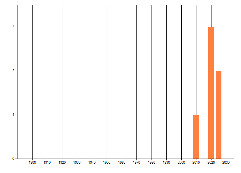 Het aantal atlasblokken (5x5 km) waarin de soort is gemeld binnen een periode van vijf jaar (vanaf 1980) of twintig jaar. Niet gecorrigeerd voor waarnemersinspanning en het aantal doorgegeven waarnemingen kan sterk variëren per periode, dus een trend in verspreiding kan hier niet direct uit worden afgelezen. Het opgegeven jaartal is het eerste jaar van de periode. Bron: gevalideerde waarnemingen uit de NDFF.