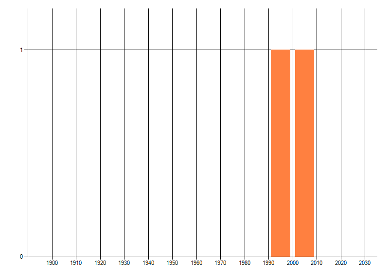 Het aantal atlasblokken (5x5 km) waarin de soort is gemeld binnen een periode van vijf jaar (vanaf 1980) of twintig jaar. Niet gecorrigeerd voor waarnemersinspanning en het aantal doorgegeven waarnemingen kan sterk variëren per periode, dus een trend in verspreiding kan hier niet direct uit worden afgelezen. Het opgegeven jaartal is het eerste jaar van de periode. Bron: gevalideerde waarnemingen uit de NDFF.