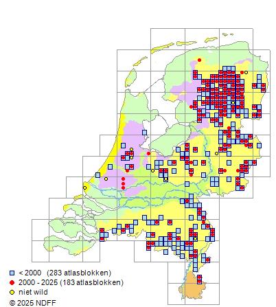 Bron: FLORON - Gemodelleerd op basis van waarnemingen uit de NDFF voor de periode 2000-2021.