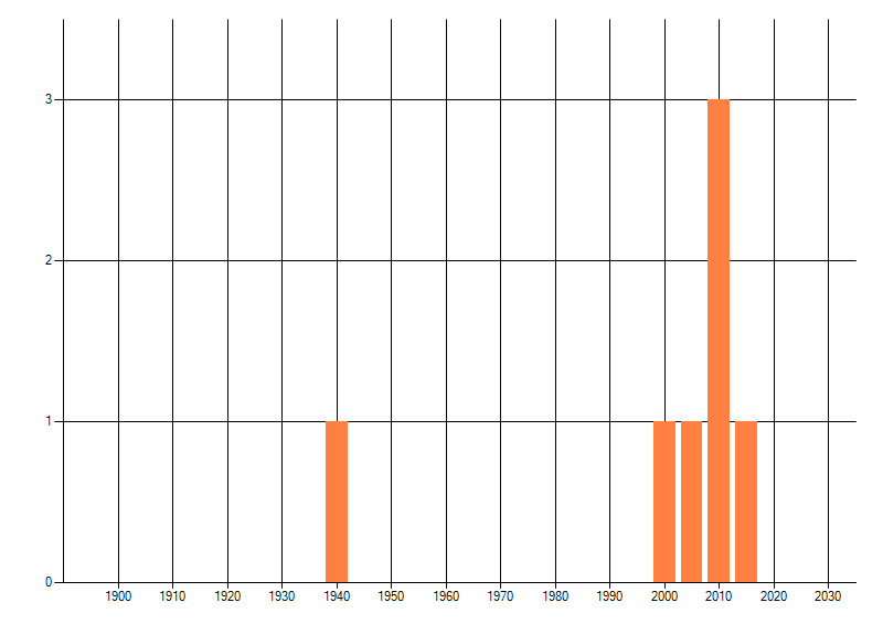 Het aantal atlasblokken (5x5 km) waarin de soort is gemeld binnen een periode van vijf jaar (vanaf 1980) of twintig jaar. Niet gecorrigeerd voor waarnemersinspanning en het aantal doorgegeven waarnemingen kan sterk variëren per periode, dus een trend in verspreiding kan hier niet direct uit worden afgelezen. Het opgegeven jaartal is het eerste jaar van de periode. Bron: gevalideerde waarnemingen uit de NDFF.