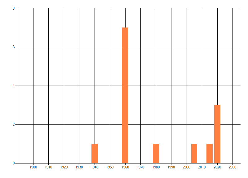 Het aantal atlasblokken (5x5 km) waarin de soort is gemeld binnen een periode van vijf jaar (vanaf 1980) of twintig jaar. Niet gecorrigeerd voor waarnemersinspanning en het aantal doorgegeven waarnemingen kan sterk variëren per periode, dus een trend in verspreiding kan hier niet direct uit worden afgelezen. Het opgegeven jaartal is het eerste jaar van de periode. Bron: gevalideerde waarnemingen uit de NDFF.