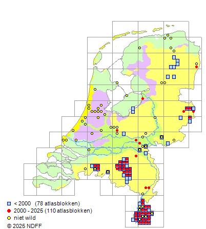 Bron: FLORON - Gemodelleerd op basis van waarnemingen uit de NDFF voor de periode 2000-2021.