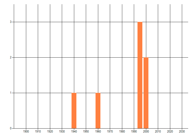 Het aantal atlasblokken (5x5 km) waarin de soort is gemeld binnen een periode van vijf jaar (vanaf 1980) of twintig jaar. Niet gecorrigeerd voor waarnemersinspanning en het aantal doorgegeven waarnemingen kan sterk variëren per periode, dus een trend in verspreiding kan hier niet direct uit worden afgelezen. Het opgegeven jaartal is het eerste jaar van de periode. Bron: gevalideerde waarnemingen uit de NDFF.