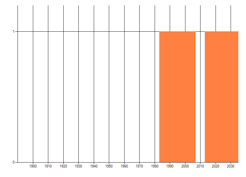 Het aantal atlasblokken (5x5 km) waarin de soort is gemeld binnen een periode van vijf jaar (vanaf 1980) of twintig jaar. Niet gecorrigeerd voor waarnemersinspanning en het aantal doorgegeven waarnemingen kan sterk variëren per periode, dus een trend in verspreiding kan hier niet direct uit worden afgelezen. Het opgegeven jaartal is het eerste jaar van de periode. Bron: gevalideerde waarnemingen uit de NDFF.