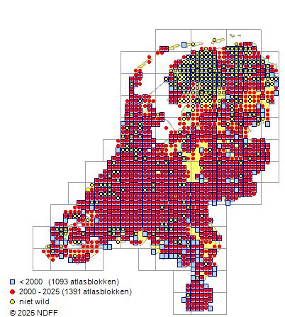 CC BY-NC-SA 3.0 NLVerspreidingNederlandPlaatselijk vrij algemeen, maar zeldzaam in de zandstreken in het noordoosten, op de Veluwe, in Flevoland en op Texel (niet op de andere Waddeneilanden).