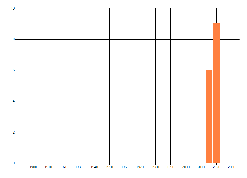 Het aantal atlasblokken (5x5 km) waarin de soort is gemeld binnen een periode van vijf jaar (vanaf 1980) of twintig jaar. Niet gecorrigeerd voor waarnemersinspanning en het aantal doorgegeven waarnemingen kan sterk variëren per periode, dus een trend in verspreiding kan hier niet direct uit worden afgelezen. Het opgegeven jaartal is het eerste jaar van de periode. Bron: gevalideerde waarnemingen uit de NDFF.