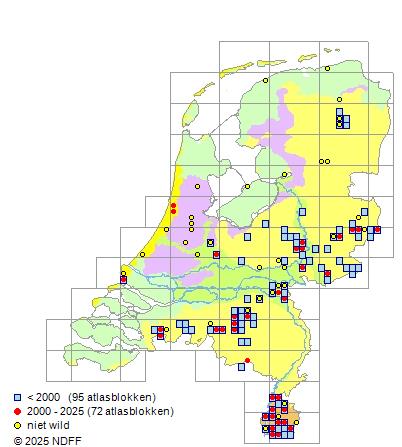 CC BY-NC-SA 3.0 NLVerspreidingNederlandZeldzaam in Zuid-Limburg en zeer zeldzaam in Noord-Drenthe, Noord-Brabant, bij Nijmegen, in het zuiden van Twente en in de Achterhoek.
